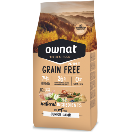 Ownat Prime Grain Free Junior LambEspecialmente indicado para aqueles filhotes (de 2-3 meses até o final de seu crescimento) que apresentem sensibilidade ou intolerâncias digestivas ou cutâneas. Com 40% de cordeiro fresco, oferece uma alta ingestão de energia e rica em proteínas para atender às altas exigências de seu organismo em desenvolvimento.