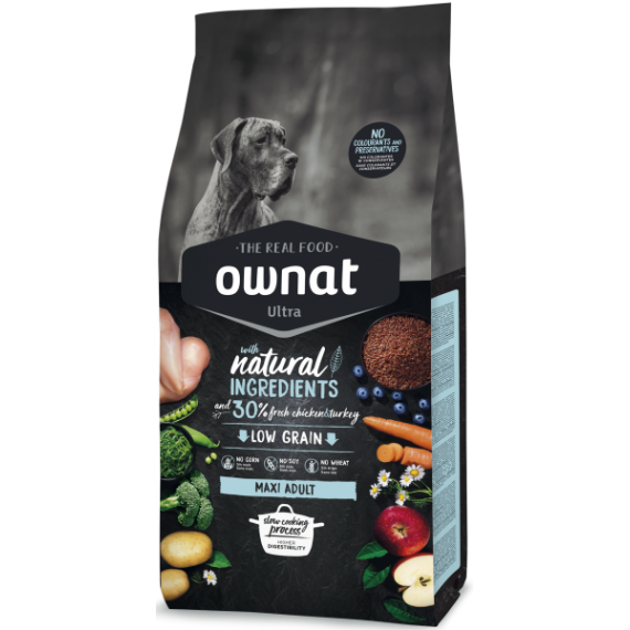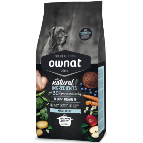 Composição: frango fresco e de peru * (30% min. Antes do cozimento), carne desidratada (20%), mandioca *, ervilhas inteiros *, arroz integral *, gordura de frango ( preservado com antioxidantes naturais ), feijões inteiros *, * todo cevada, batata desidratada *, hidrolisado de galinha (2,5%), levedura *, polpa de beterraba, vagem de alfarroba *, óleo de salmão ( preservado com antioxidantes naturais ), linhaça *, maçã fresca * (1%), cenoura fresca * (0,5%), brócolos frescos * (0,5%), sal-gema *, alfafa desidratada *, as raízes de chicória (FOS) *, extracto de levedura (MOS) , secou-se algas *, glucosamina, schidigera mandioca, sulfato de condroitina, mirtilos *, chá verde *, equinácea *, * flor camomila. * Ingredientes naturais