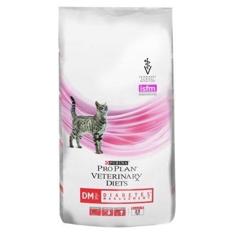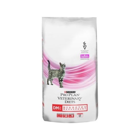 A Ração para gato Purina Pro Plan DM St/ Ox Diabetes Management é uma dieta veterinária completa altamente palatável para ajudar no maneio da diabetes mellitus felina. Foi especialmente formulada para para ajudar a regular o nível de glucose no sangue em gatos diabéticos. Feline DM St/ Ox Diabetes Management contém baixos níveis de carboidratos para ajudar a reduzir as variações de glucose no sangue, e altos níveis de proteína para ajudar a reduzir as necessidades de insulina em gatos diabéticos. Feline DM St/ Ox Diabetes Management possui um nível elevado de proteína que se provou reduzir as necessidades de insulina em gatos diabéticos. É formulada com níveis aumentados do antioxidante vitamina E para reduzir o stress oxidativo associado à diabetes. De notar que Feline DM St/ Ox Diabetes Management não é adequada para gatas gestantes, gatinhos, ou gatos que necessitem de uma dieta com baixa proteína. Recomenda-se a consulta de um médico veterinário antes da utilização ou do prolongamento do período de utilização