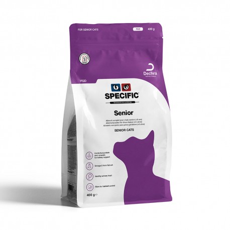 Specific Senior é um alimento completa e equilibrada para gato sénior que tem em conta o facto das suas necessidades nutricionais se alterarem com a idade. Indicado para gato com mais de 8 anos.