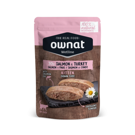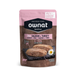 COMPOSIÇÃO: Salmão (35%), peru (35%), caldo (28,8%), minerais, óleo de salmão, camomila (0,1%).