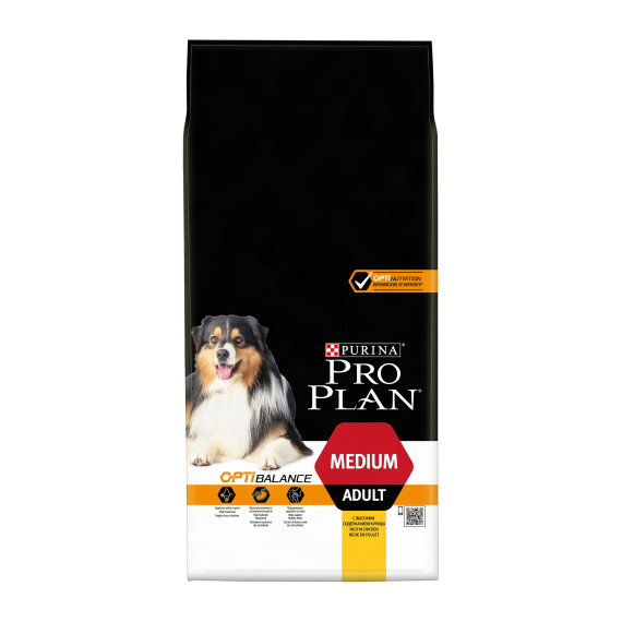 Rico em Frango, Purina PRO PLAN Cão Médio Adulto com OPTIBALANCE™ assegura que o seu cão tem toda a nutrição que necessita das refeições para que possa viver a vida ao máximo.