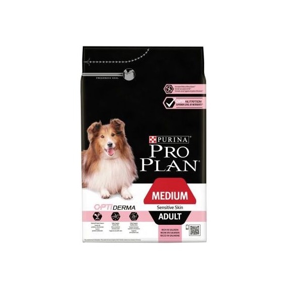 Ração Purina PRO PLAN para Cão Médio Adulto com OPTIDERMA® é um alimento seco para cães Adultos que têm pele sensível. Se o seu cão de tamanho médio tem pele sensível, este alimento completo é especialmente formulado para o ajudar nas suas necessidades e tratar a sua sensibilidade.