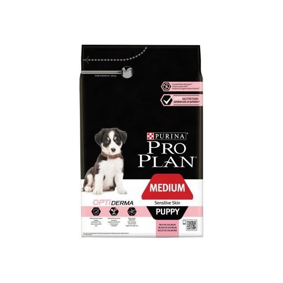 Purina PRO PLAN Cachorro Médio com OPTIDERMA® é uma ração para cão criada especificamente para as necessidades dos cachorros que têm pele sensível, bem como para cadelas gestantes ou lactantes.